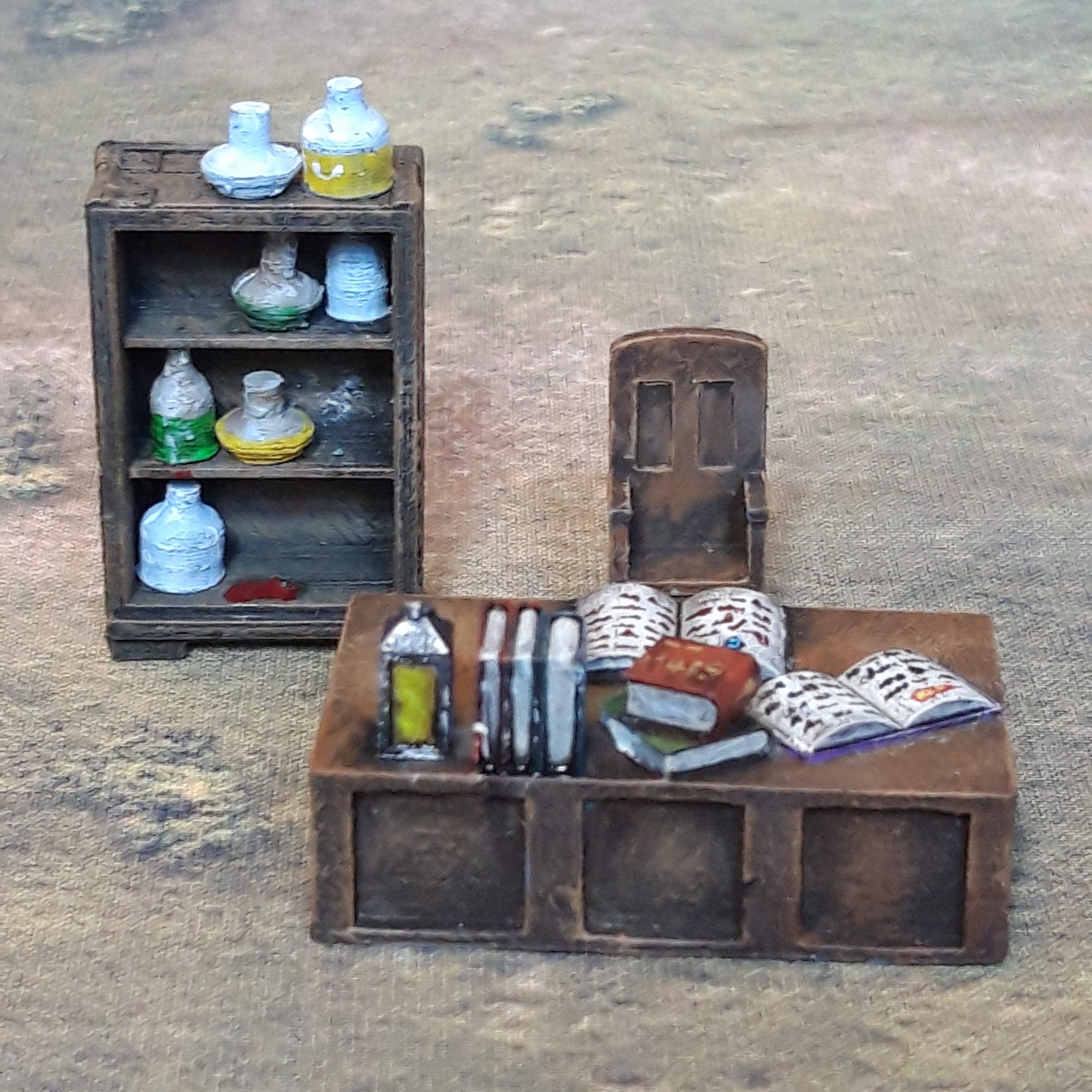Contents: 1 x Table with books, 1 x Chair, 1 x Shelf, 12 x Potion Bottles, 1 x Orb.